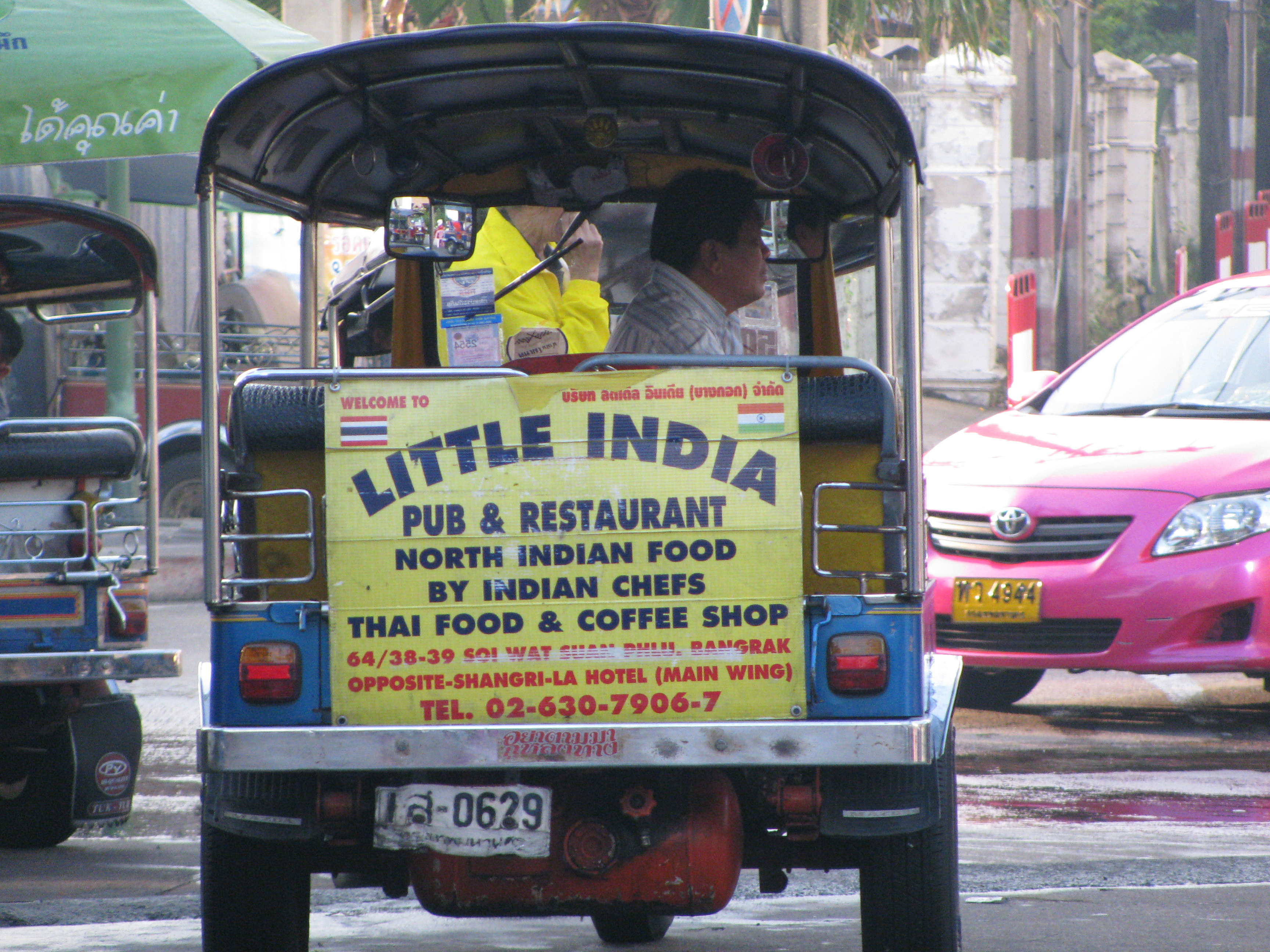 Tuk-Tuk , As they call this vehicle in Thailand is the same AutoRickshaw or “Auto” as we call in India. Compared to Auto’s in India their counterparts are very much open and airy. Now this Tuk-Tuk made me feel little more homely and happier. Yes, look at the ad “Little INDIA” restaurant in Bangkok.